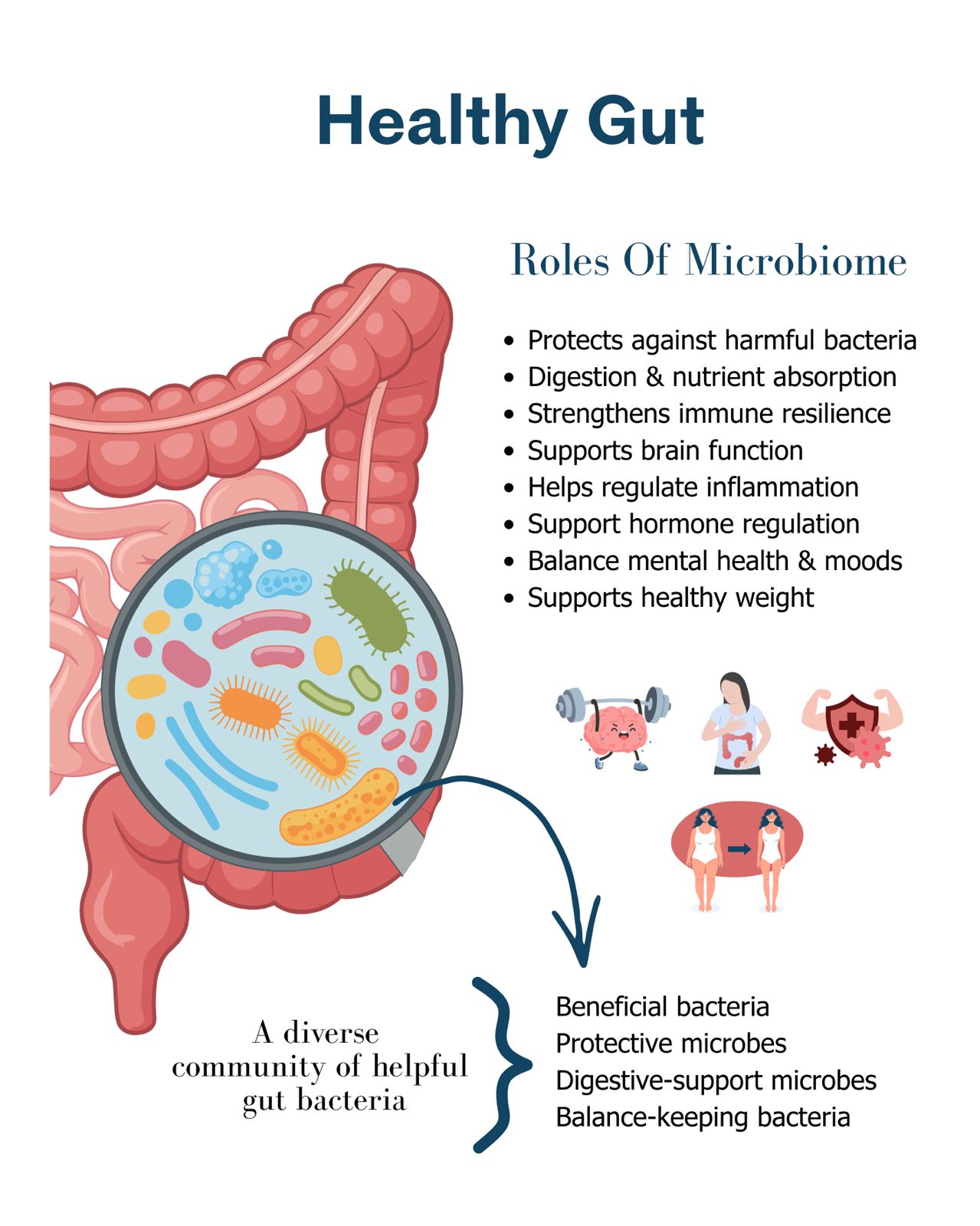 Your gut microbiome is the foundation of your health. These tiny microbes govern digestion, immunity, hormones, brain function, and energy. When out of balance, your body signals it with constipation, bloating, fatigue, sugar cravings, mood changes, and inflammation.